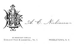 Albert's Excelsior Hook & Ladder Co. card